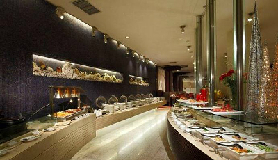 南国宴乐餐厅:浓郁岭南风情,主打粤菜精品; 江南丝竹餐厅:云集南北风味菜式,洋溢水乡情调; 咖啡磨自助餐厅:以供应西式自助餐为主,开放式设计与独特的主题分区; 行政廊餐厅:经营西式大餐,融汇时尚与经典风格; 大堂吧:以供应咖啡、饮品、小食为主,可聆听钢琴韵律,静赏园林美景。